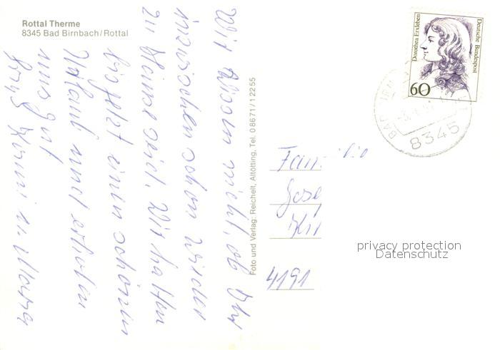 73311813 alte Postkarte Bad Birnbach Rottal Terme postalisch gelaufen Erhaltung siehe scans [KathaD81] KatCode: 11110009277113