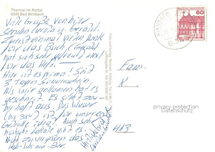 73636686 alte Postkarte Bad Birnbach Rottal Therme Fliegeraufnahme postalisch gelaufen Erhaltung siehe scans [WerneD78] KatCode: 11110009277113