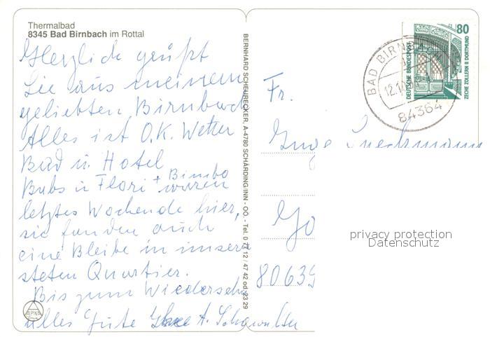 73596647 alte Postkarte Bad Birnbach Thermalbad Terrasse Thermalbecken Hallenbad postalisch gelaufen Erhaltung siehe scans [WerneD78] KatCode: 11110009277113