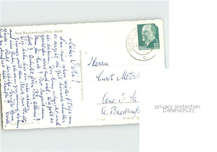 72036979 alte Postkarte Bad Blankenburg postalisch gelaufen Erhaltung siehe scans KatCode: 11110016073005