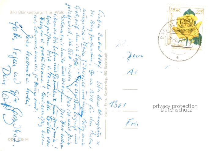 72941144 alte Postkarte Bad Blankenburg postalisch gelaufen Erhaltung siehe scans [NatalD47] KatCode: 11110016073005