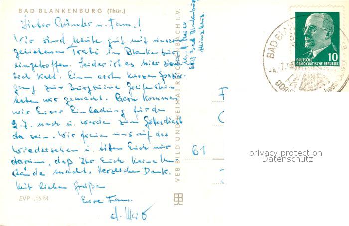 72962087 alte Postkarte Bad Blankenburg Burgruine Greifenstein postalisch gelaufen Erhaltung siehe scans [LiesaD40] KatCode: 11110016073005