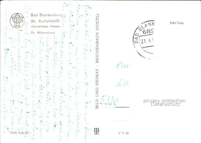 72181523 alte Postkarte Bad Blankenburg Christliches Hoslpiz postalisch gelaufen Erhaltung siehe scans KatCode: 11110016073005