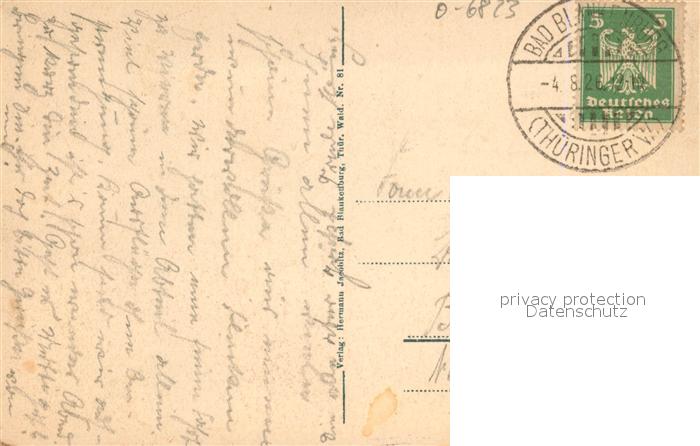 43367811 alte Postkarte Bad Blankenburg Eingang ins Schwarzatal postalisch gelaufen Erhaltung siehe scans [WerneD78] KatCode: 11110016073005
