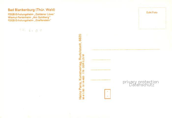 73259330 Bad Blankenburg Erholungsheim Goldener Loewe Ferienheim Am Goldberg postalisch nicht gelaufen Erhaltung siehe scans [NatalD47] KatCode: 11110016073005