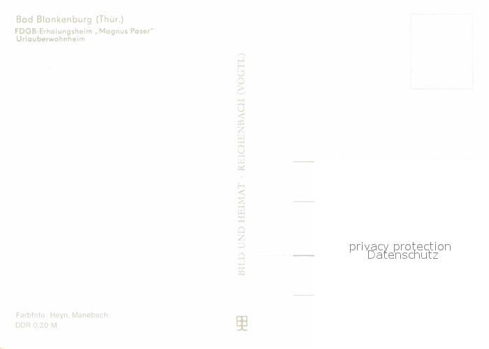 72621392 Bad Blankenburg Erholungsheim Magnus Poser postalisch nicht gelaufen Erhaltung siehe scans [LiesaD40] KatCode: 11110016073005