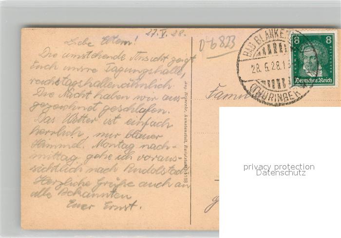 42966128 alte Postkarte Bad Blankenburg Ev Allianzhaus Konferenzhalle postalisch gelaufen Erhaltung siehe scans [WerneD78] KatCode: 11110016073005