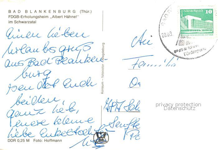 73032387 alte Postkarte Bad Blankenburg FDGB Erholungsheim Albert Haehnel postalisch gelaufen Erhaltung siehe scans [WerneD78] KatCode: 11110016073005