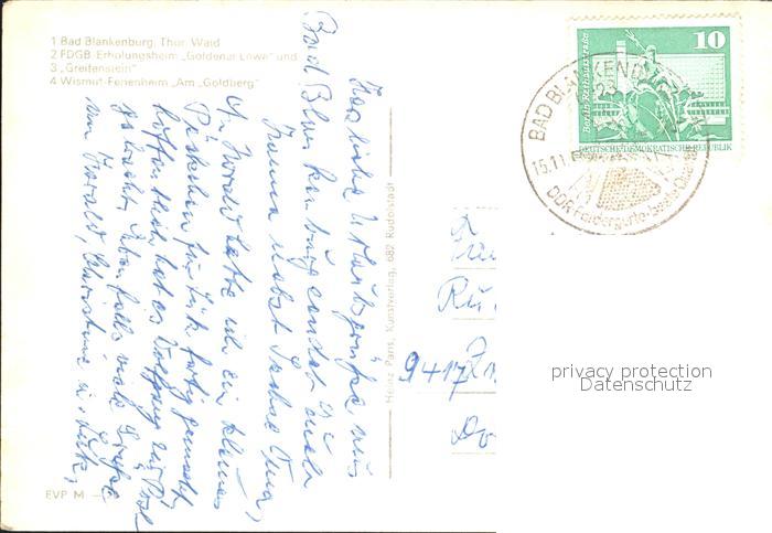 72343401 alte Postkarte Bad Blankenburg FDGB Erholungsheim Greifenstein Wismut Ferienheim postalisch gelaufen Erhaltung siehe scans KatCode: 11110016073005