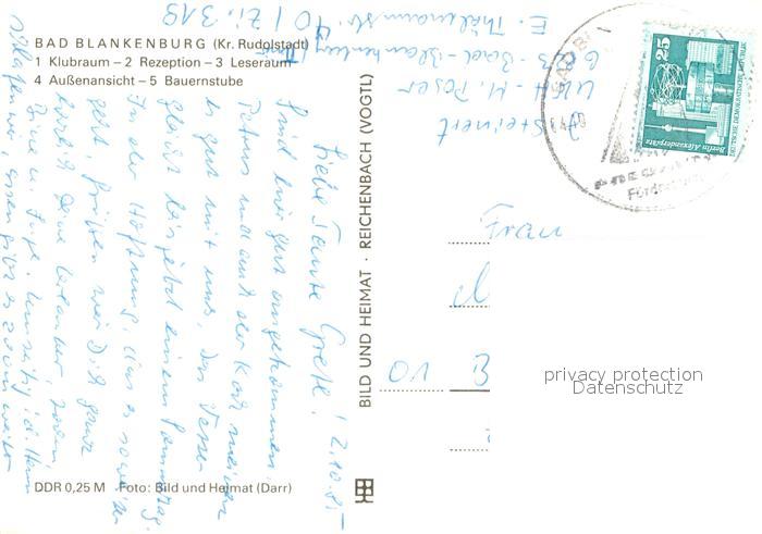 73723121 alte Postkarte Bad Blankenburg FDGB Erholungsheim Magnus Poser Klubraum Rezeption Leseraum Bauernstube postalisch gelaufen Erhaltung siehe scans [WerneD78] KatCode: 11110016073005
