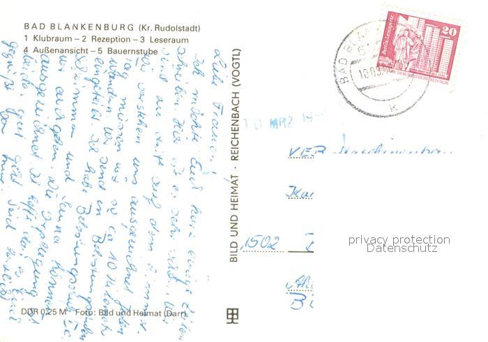 73741076 alte Postkarte Bad Blankenburg FDGB-Erholungsheim Magnus Poser Teilansichten Innen u. Aussen postalisch gelaufen Erhaltung siehe scans [LiesaD40] KatCode: 11110016073005
