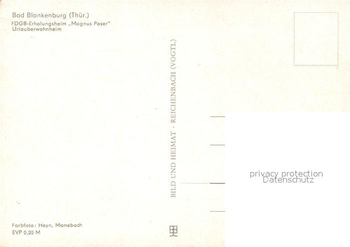 73661923 Bad Blankenburg FDGB Erholungsheim Magnus Poser Urlauberwohnheim postalisch nicht gelaufen Erhaltung siehe scans [FriedD77] KatCode: 11110016073005