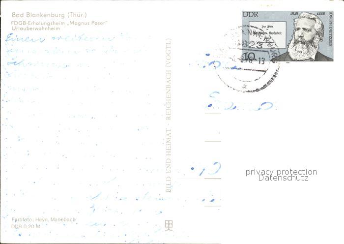 72419497 alte Postkarte Bad Blankenburg FDGB Erholungsheim Magnus Poser Urlauberwohnheim postalisch gelaufen Erhaltung siehe scans KatCode: 11110016073005
