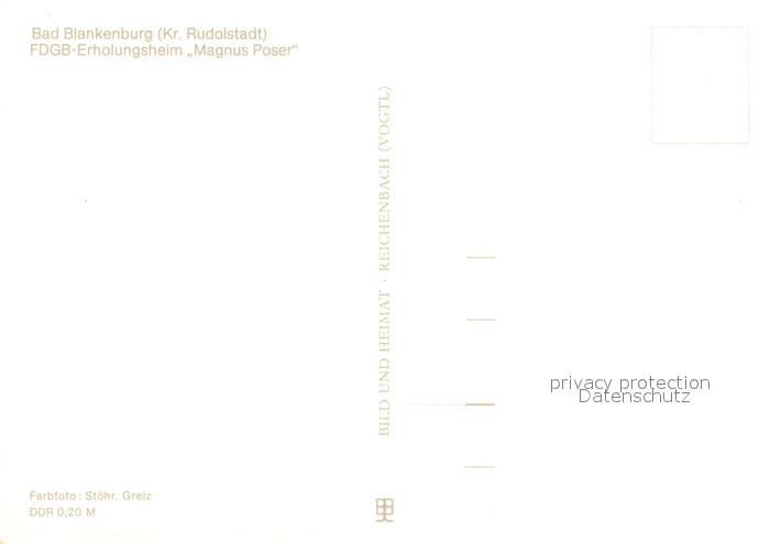 73616538 Bad Blankenburg FDGB Erholungsheim Magnus Poser postalisch nicht gelaufen Erhaltung siehe scans [WerneD78] KatCode: 11110016073005