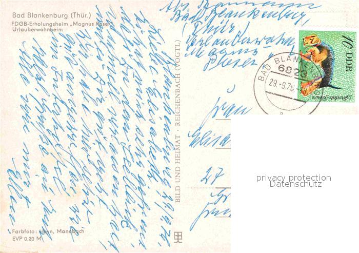72841799 alte Postkarte Bad Blankenburg FDGB Erholungsheim Magnus Roser postalisch gelaufen Erhaltung siehe scans [WerneD78] KatCode: 11110016073005