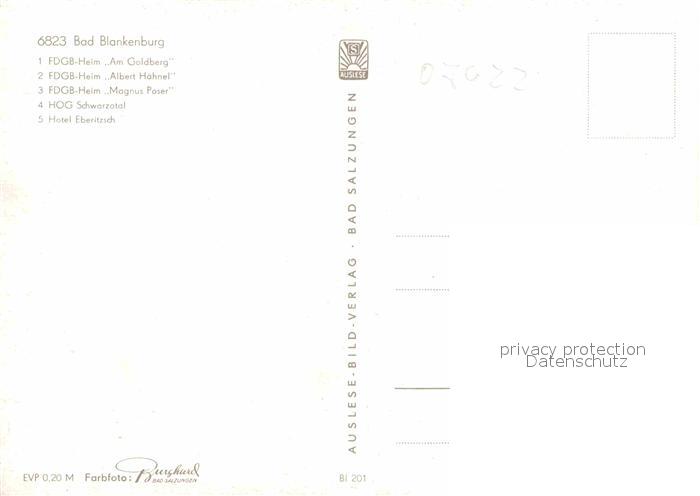 72917822 Bad Blankenburg FDGB-Heime Am Goldberg Albert-Haehnel Magnus-Poser Schwarzatal Hotel Eberitzsch postalisch nicht gelaufen Erhaltung siehe scans [LiesaD40] KatCode: 11110016073005