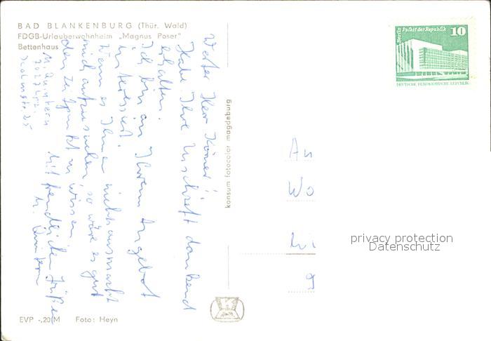71972551 Bad Blankenburg FDGB Urlaberwohnheim Magnus Poser Bettenhaus postalisch nicht gelaufen Erhaltung siehe scans KatCode: 11110016073005