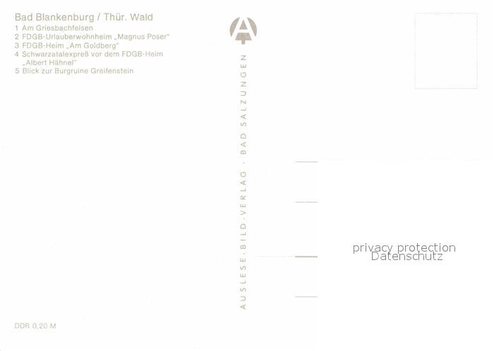 72919490 Bad Blankenburg Griesbachfelsen FDGB Urlauberheim Schwarzatalexpress Burgruine Greifenstein postalisch nicht gelaufen Erhaltung siehe scans [FriedD77] KatCode: 11110016073005