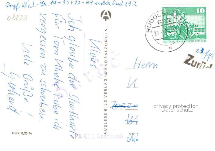 72917329 alte Postkarte Bad Blankenburg Heim Am Goldberg Cafe Central Markt postalisch gelaufen Erhaltung siehe scans [PaolaD17] KatCode: 11110016073005