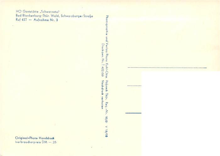 73871195 Bad Blankenburg HO Gaststaette Schwarzatal postalisch nicht gelaufen Erhaltung siehe scans [FriedD77] KatCode: 11110016073005