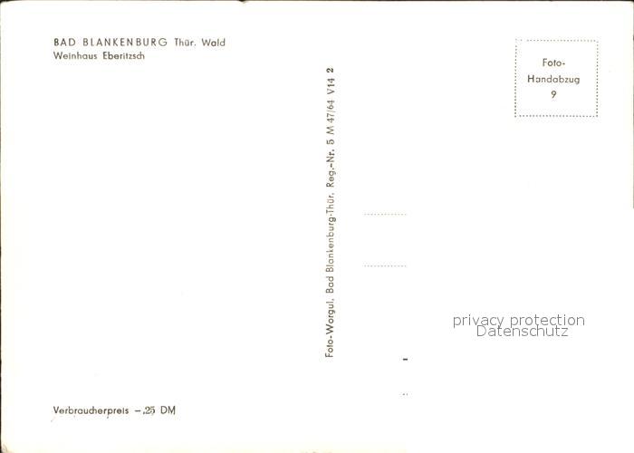 72359981 Bad Blankenburg Hotel Weinhaus Eberitzsch postalisch nicht gelaufen Erhaltung siehe scans KatCode: 11110016073005