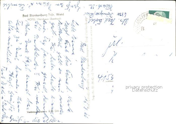 72315510 alte Postkarte Bad Blankenburg Hotel Weinhaus Eberitzsch postalisch gelaufen Erhaltung siehe scans KatCode: 11110016073005