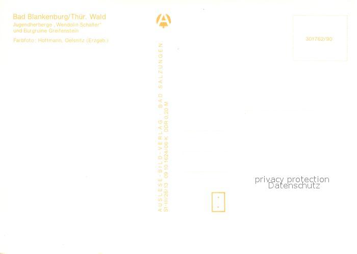 73722149 Bad Blankenburg Jugendherberge Wendolin Schaller Burgruine-Greifenstein postalisch nicht gelaufen Erhaltung siehe scans [LiesaD40] KatCode: 11110016073005