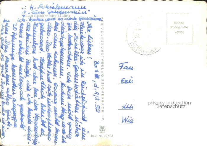 72350891 alte Postkarte Bad Blankenburg Markt Burg Greifenstein Eberstein Bergbaukrankenhaus Postkutsche Schwarzatal postalisch gelaufen Erhaltung siehe scans KatCode: 11110016073005