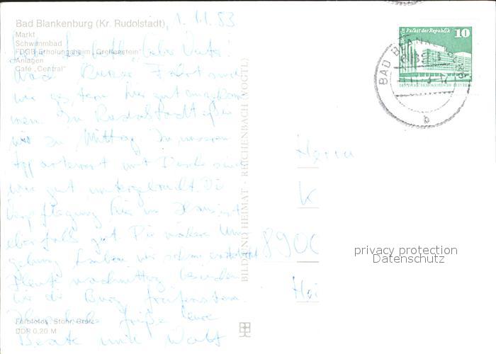 72294627 alte Postkarte Bad Blankenburg Markt Schwimmbad Cafe Central postalisch gelaufen Erhaltung siehe scans KatCode: 11110016073005