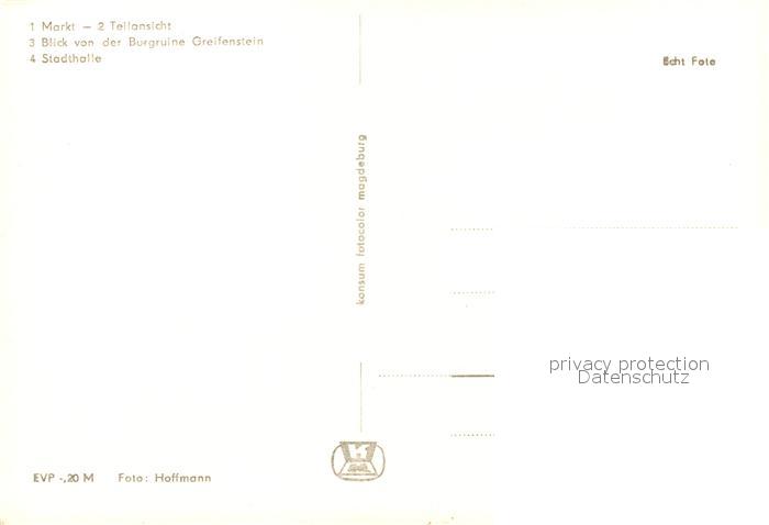 73102505 Bad Blankenburg Markt Stadthalle Blick von Burgruine Greifenstein postalisch nicht gelaufen Erhaltung siehe scans [KathaD81] KatCode: 11110016073005