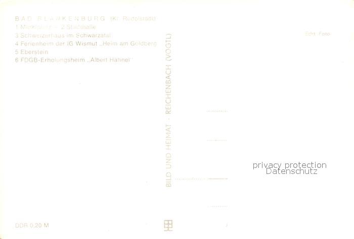 72963928 Bad Blankenburg Marktplatz Stadthalle Schweizerhaus Schwarzatal Ferienheim IG Wismut Eberstein FDGB Erholungsheim postalisch nicht gelaufen Erhaltung siehe scans [FriedD77] KatCode: 11110016073005