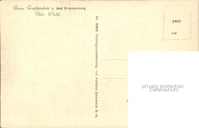 72291804 Bad Blankenburg Ruine Greifenstein Thueringer Wald postalisch nicht gelaufen Erhaltung siehe scans KatCode: 11110016073005