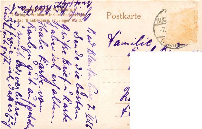 73876498 alte Postkarte Bad Blankenburg Sanatorium Schwarzeck postalisch gelaufen Erhaltung siehe scans [FriedD77] KatCode: 11110016073005