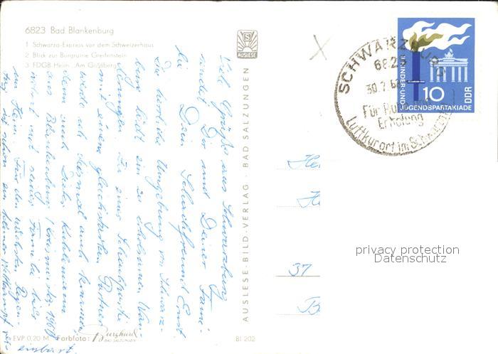72598224 alte Postkarte Bad Blankenburg Schweizer Haus postalisch gelaufen Erhaltung siehe scans [LiesaD40] KatCode: 11110016073005