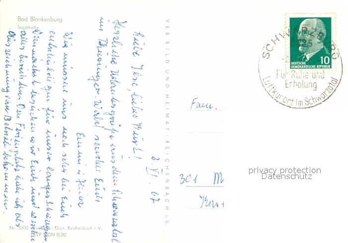 72616383 alte Postkarte Bad Blankenburg Stadthalle postalisch gelaufen Erhaltung siehe scans [FriedD77] KatCode: 11110016073005