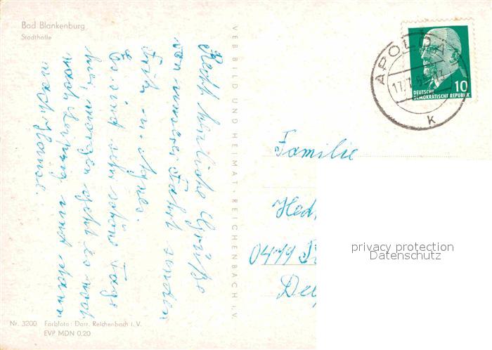 72669128 alte Postkarte Bad Blankenburg Stadthalle postalisch gelaufen Erhaltung siehe scans [LiesaD40] KatCode: 11110016073005