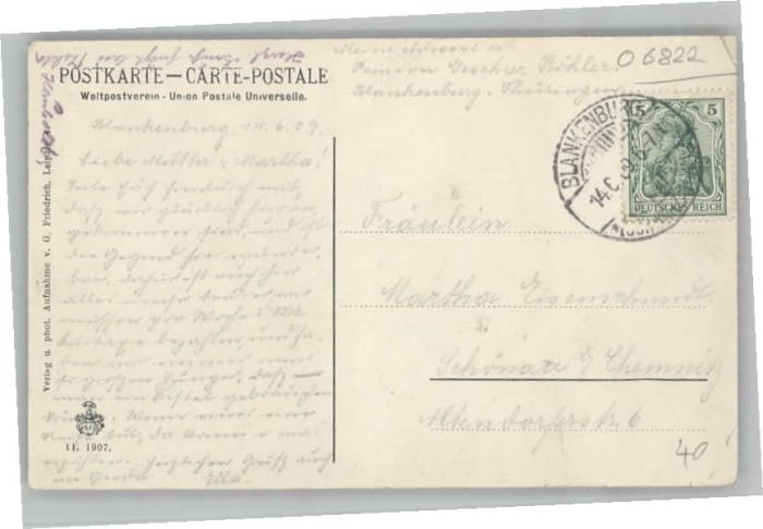 40634347 Bad Blankenburg [Stempelabschlag] Hotel Waidmannsheil KatCode 11110016073005