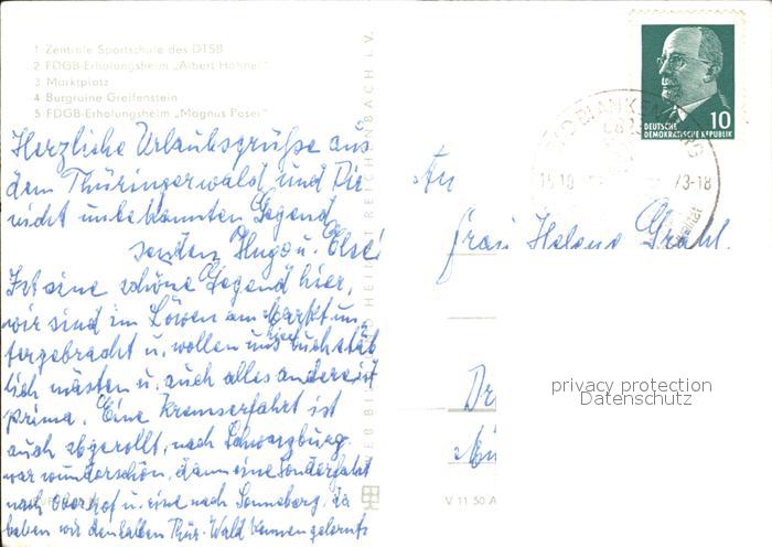 72442630 alte Postkarte Bad Blankenburg Zentrale Sportschule DTSB Burgruine Greifenstein Marktplatz postalisch gelaufen Erhaltung siehe scans KatCode: 11110016073005