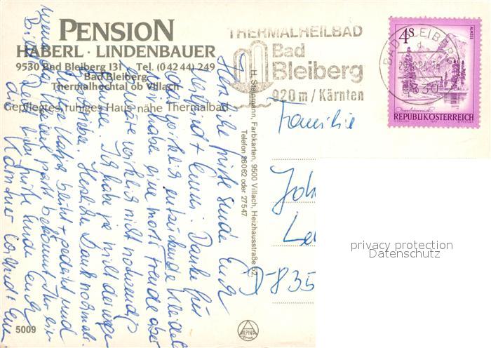 13188243 alte Postkarte Bad Bleiberg Pension Haberl Lindebauer postalisch gelaufen Erhaltung siehe scans [NatalD47] KatCode: 11390211020705