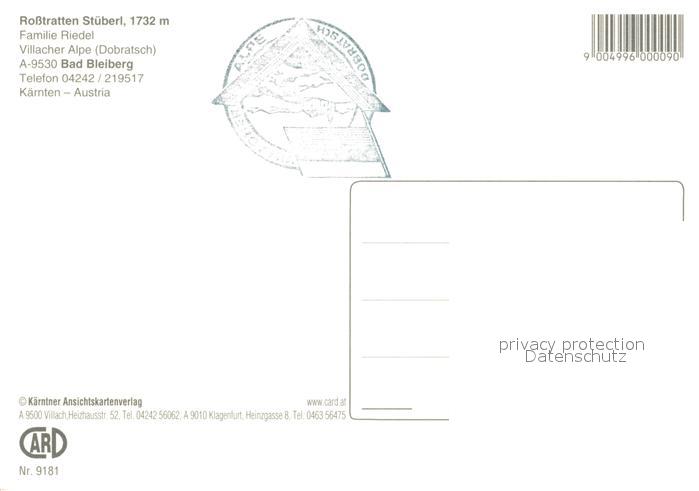 73070822 Bad Bleiberg Rosstratten Stueberl Berggaststaette Villacher Alpe Dobratsch Alpenpanorama postalisch nicht gelaufen Erhaltung siehe scans [FriedD77] KatCode: 11390211020705