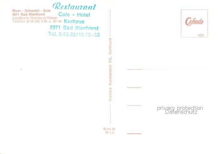 73763266 Bad Blenhorst Restaurant Hotel Kurhaus postalisch nicht gelaufen Erhaltung siehe scans [WerneD78] KatCode: 11110003256001