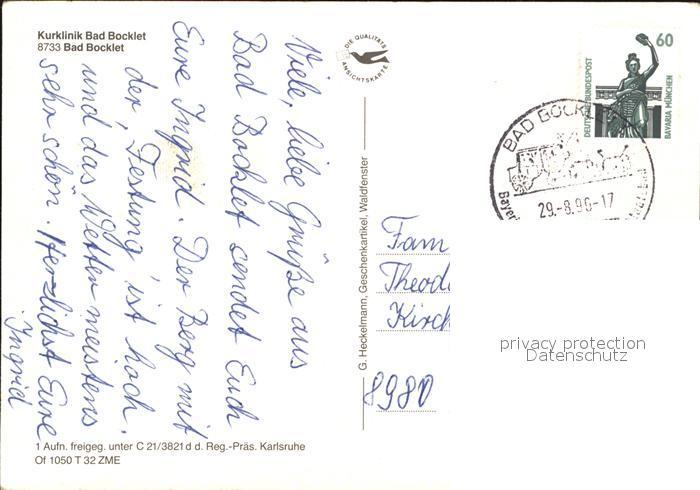 72572534 alte Postkarte Bad Bocklet Fliegeraufnahme Kurklinik postalisch gelaufen Erhaltung siehe scans [LiesaD40] KatCode: 11110009672112