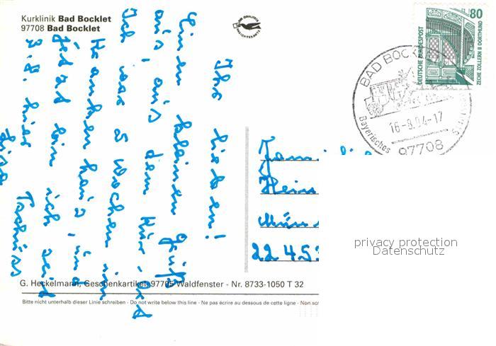 72673787 alte Postkarte Bad Bocklet Fliegeraufnahme Kurklinik Hallenbad postalisch gelaufen Erhaltung siehe scans [AndreD76] KatCode: 11110009672112