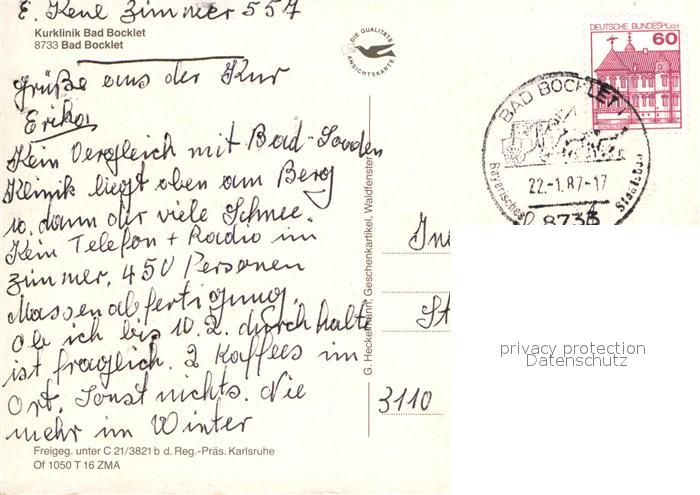 72929628 alte Postkarte Bad Bocklet Fliegeraufnahme Kurklinik postalisch gelaufen Erhaltung siehe scans [KathaD81] KatCode: 11110009672112
