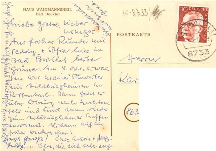73909419 alte Postkarte Bad Bocklet Haus Waidmannsheil Kuenstlerkarte postalisch gelaufen Erhaltung siehe scans [FriedD77] KatCode: 11110009672112