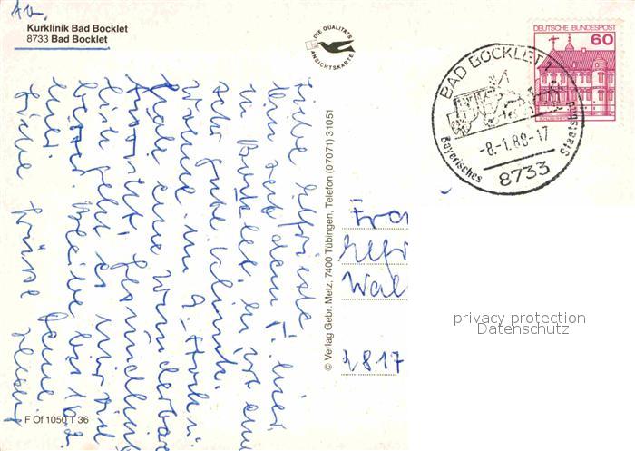 72867561 alte Postkarte Bad Bocklet Kurklinik Bad Bocklet Speisesaal Hallenbad postalisch gelaufen Erhaltung siehe scans [WerneD78] KatCode: 11110009672112