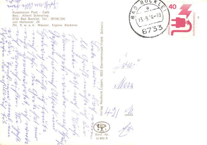 73870414 alte Postkarte Bad Bocklet Kurpension Post Cafe postalisch gelaufen Erhaltung siehe scans [FriedD77] KatCode: 11110009672112