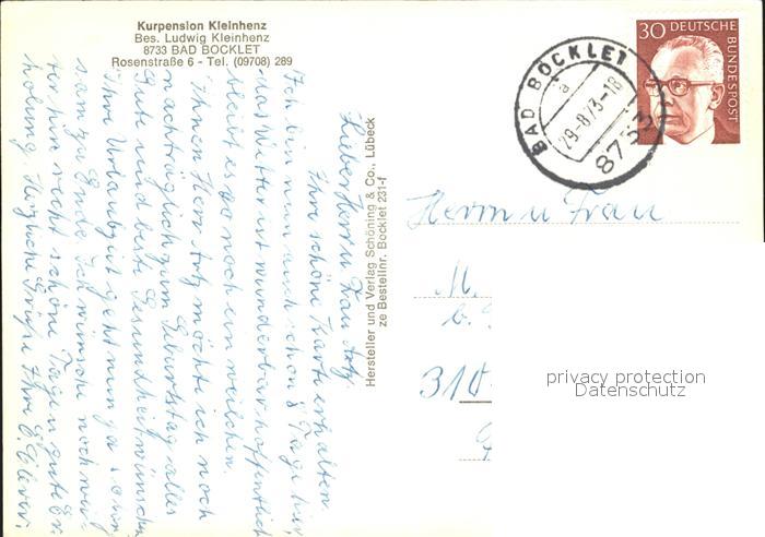 72067767 alte Postkarte Bad Bocklet Pension Kleinhenz postalisch gelaufen Erhaltung siehe scans KatCode: 11110009672112