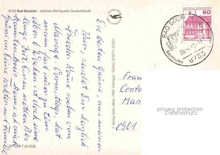 72696769 alte Postkarte Bad Bocklet Staerkste Stahlquelle Deutschlands Kurklinik Kurhaus Park postalisch gelaufen Erhaltung siehe scans [FriedD77] KatCode: 11110009672112