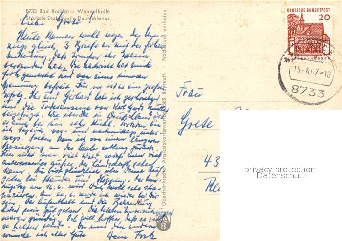 73048270 alte Postkarte Bad Bocklet Wandelhalle postalisch gelaufen Erhaltung siehe scans [WerneD78] KatCode: 11110009672112